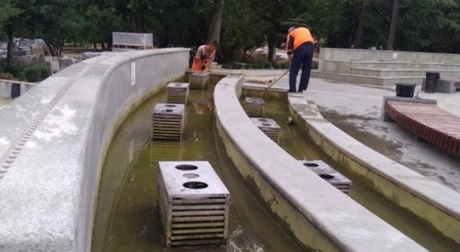 «Работники «Города» после слива воды из фонтанов с помощью спецмашин выполняют очистку сооружений и устройств от известкового налёта, после чего они будут заполнены чистой водой. Также сотрудники учреждения произвели чистку и покрытие олифой лавочек в парке культуры и отдыха «Екатерининский сад». Работы по содержанию и очистке в парке продолжаются», - рассказал Виталий Стешенко.