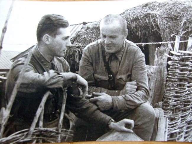 Леонид Яблонский (слева) и Михаил Соловьёв, коллеги-фронтовики, 1942 год.