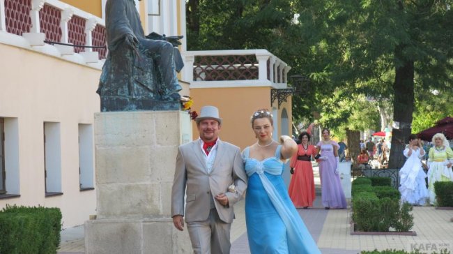 В утешение покажу вам начало празднования дня рождения Айвазовского у его картинной галереи. Должен же быть какой-то позитив. Если быстро побежать, - успеете еще выступление театра "Парадокс".