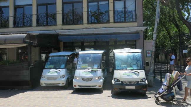 А это экскурсионные машинки на Галерейной, напротив музея Грина. Им можно
