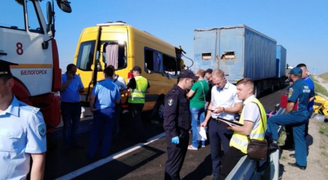 Напомним, 31 июля около 5 часов утра, микроавтобус «Mercedes-Benz Sprinter 315 CDI», следовавший из Краснодара в Симферополь, в районе с. Русаковка Белогорского района Республики Крым совершил столкновение с грузовым авто «КамАЗ» с прицепом. В момент ДТП в салоне транспортного средства находилось 18 человек, из которых 8 пассажиров и водитель получили смертельные травмы. Скорость микроавтобуса на момент столкновения составляла более 100 км/ч при допустимой 90 км/ч.