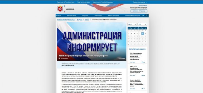 В свою очередь, в тот же день, 6 августа, на официальном сайте администрации Феодосии на правительственном портале Республики Крым власти города опубликовали официальную информацию