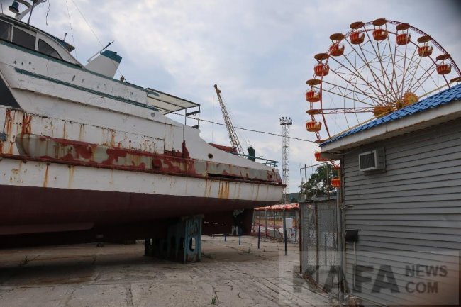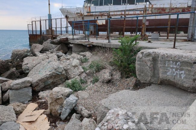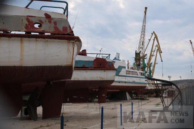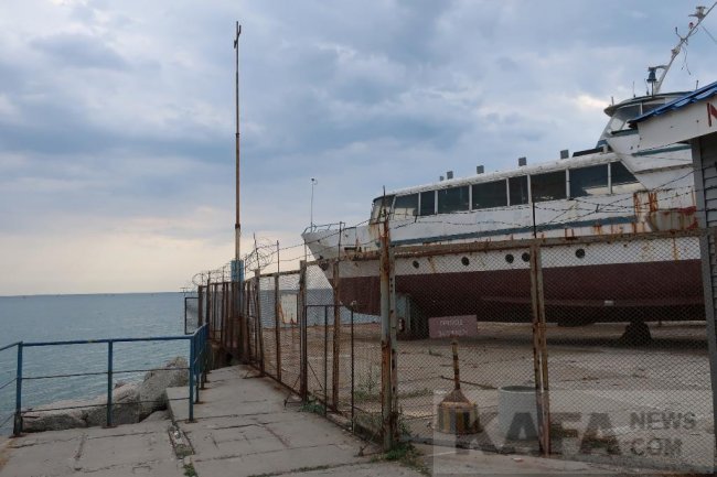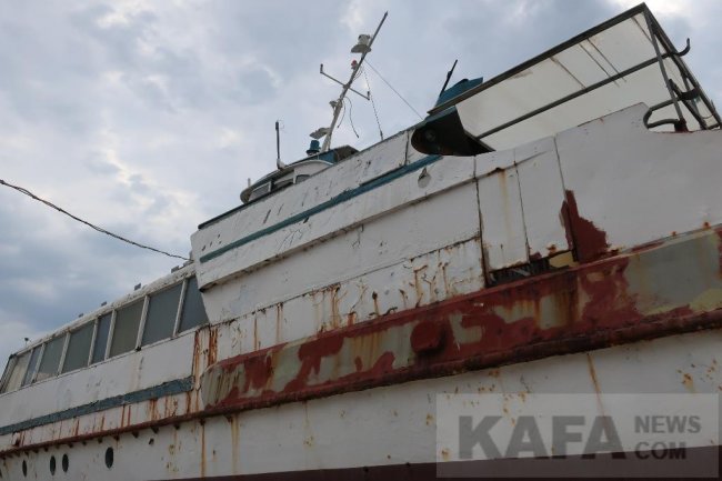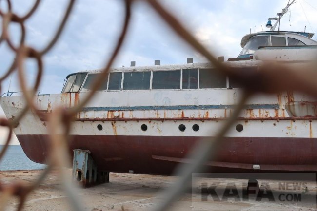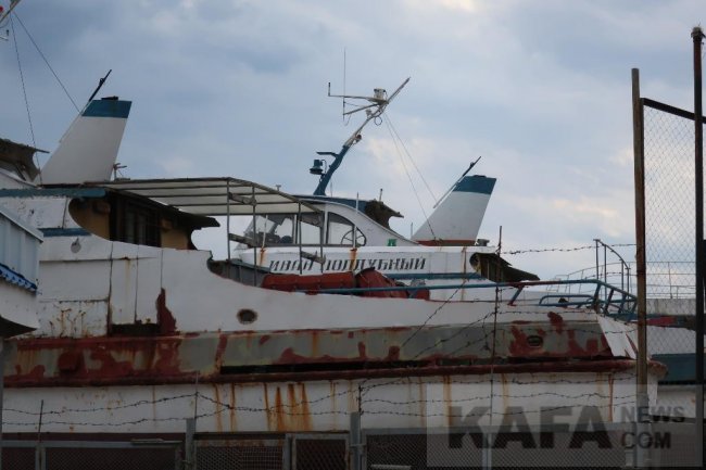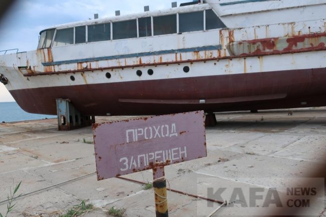 Катера стоят на причале, на территории феодосийского порта, словно металлолом, да и под стать груды, расположенной на заднем плане. Мрачный, запущенный вид катеров вызывают ужас как у местных жителей, так и у гостей города.Тем более, что нынешним летом все могут рассмотреть эту разруху с установленного поблизости колеса обозрения.