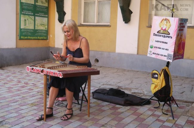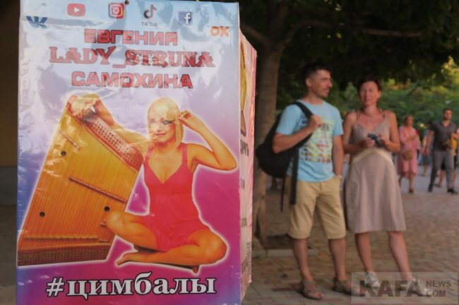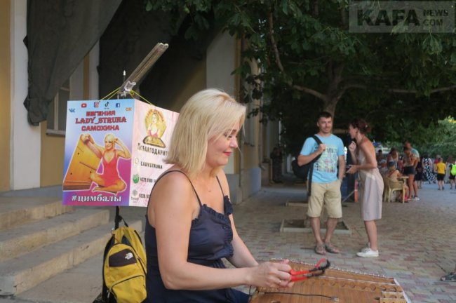 И на цимбалах в центре Феодосии играла отнюдь ни какая-нибудь неизвестная исполнительница, а сама Евгения Самохина, известная в музыкальном мире как «Lady Struna». Эта известная не только внутри страны, но и далеко за рубежом, цимбалистка дарила феодосийцам и гостям нашего города проверенные временем музыкальные композиции.