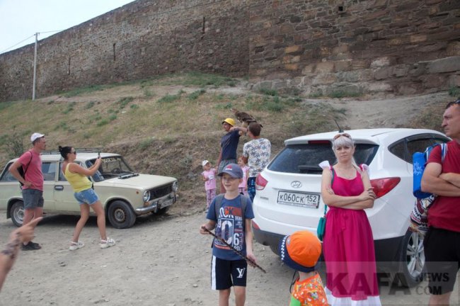 Москвичи, отдыхающие в Феодосии, пожаловались газете «Кафа» на крайне наглых мужчин, буквально принуждавших их сделать фото с животными у стен Судакской крепости. Вам не нравятся фото-голуби на набережной Феодосии? А как вам такое? Вам не нравятся фото-голуби на набережной Феодосии? А как вам такое? Вам не нравятся фото-голуби на набережной Феодосии? А как вам такое? Вам не нравятся фото-голуби на набережной Феодосии? А как вам такое? - Мы были на экскурсии в крепости, потом отошли в туалет, который находится недалеко от касс, метрах в 100. Сначала сзади к моей жене подошел парень с обезьяной, обезьяна схватила жену за волосы, и парень попытался усадить обезьяну ей на плечо. Жена очень испугалась, закричала. Парень настаивал, чтобы мы погладили обезьяну, повторяя, что это не обезьяна, а котик, и он не кусается. Тыкал обезьяну детям в руки. Было очень неприятно! - рассказал отдыхающий. Всего туристы насчитали там 4 обезьяны, орла и сову-сипуху. Все животные были привязаны на короткие поводки, испуганы, дезориентированы. Сова постоянно падала, хозяин совы подтягивал её за ногу обратно. Парни действовали настойчиво, нагло, принуждали туристов делать фотографии, давили на них, не давали пройти. Весь этот «бизнес» расположился чуть поодаль от входа в крепость, на тропе вдоль стен к морю, видимо, чтобы не привлекать внимание администрации музейного комплекса.