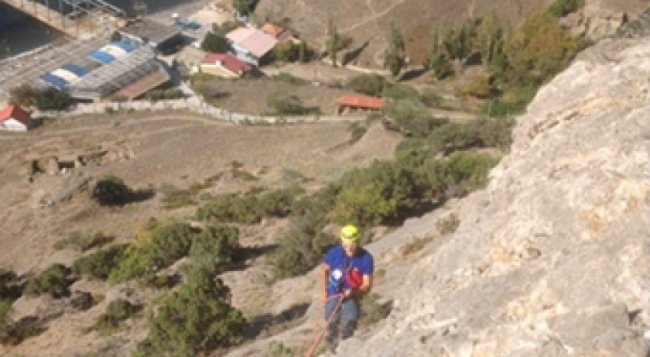 Фото пресс-службы МЧС РК. 23 августа, в 8:40, в службу спасения поступила информация о том, что нужна помощь мужчине на горе Крепостной, сообщил министр чрезвычайных ситуаций Республики Крым Сергей Шахов. Без специального снаряжения мужчина поднялся с южной стороны на гору Крепостную (г. Судак), но не рассчитал свои физические возможности, добрался до скального выступа, обратно спуститься не может вследствие сильного испуга. «Крымские спасатели с использованием альпинистского снаряжения поднялись на скальный выступ к потерпевшему, расположенному на высоте не менее 150 метров над уровнем моря. С помощью альпинистского снаряжения, со страховкой, организовали безопасный спуск пострадавшего», - рассказал министр. Мужчине оказали психологическую помощь, провели профилактическую и разъяснительную работу. В медицинской помощи он не нуждался.