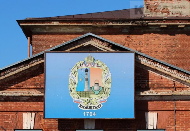 Город Кронштадт (Krone – корона, Stadt – город) расположен на острове Котлин в 28 километрах от Санкт-Петербурга. В этом месте Финский залив сужается перед мелководной Невской губой и с острова легко контролировать прибывающие суда. История города началась в 1703 году. По легенде, при появлении русских воинов шведский дозорный отряд так быстро покинул остров, что не успел затушить костер и оставил на нем котел с едой. Изображение котла, наряду с маяком и стеной крепости, находится на гербе Кронштадта.