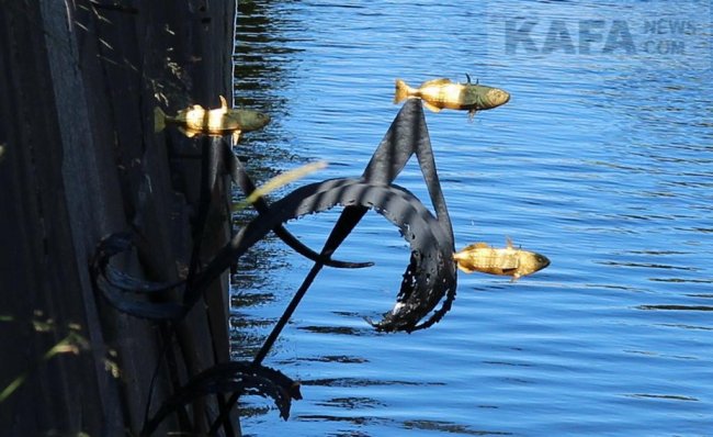 На Синем мосту Обводного канала установлен футшток - чугунная линейка с делениями для измерения уровня моря. По кронштадтскому футштоку измеряют глубину Балтийского моря и все абсолютные высоты на территории России. Когда говорят, что какое-то место находится на высоте стольких-то метров над уровнем моря, — за точку отсчета берется балтийский ноль. Рядом с футштоком небольшое здание мареографа, самопишущего прибора при футштоке. По многолетним данным этого прибора в 1942 году астроном-геодезист Ф.Н.Красовский определил истинные размеры нашей планеты. Рядом, на стене Обводного канала памятник блокадной колюшке, мелкой рыбешке, которая спасала жителей города от голода во время Блокады.Это лишь небольшая часть достопримечательностей города.