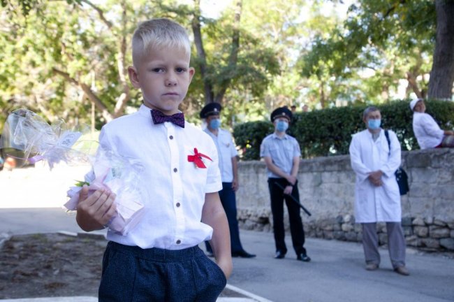 В первой школе прошли праздничные линейки для первоклассников. Для соблюдения карантинных мер были проведены 2 линейки - отдельно для 1-«А» класса и отдельно для 1-«Б» класса. Первоклассников поздравила директор школы Галина Петровна Скорик 1 сентября в феодосийской школе №1 (видео)