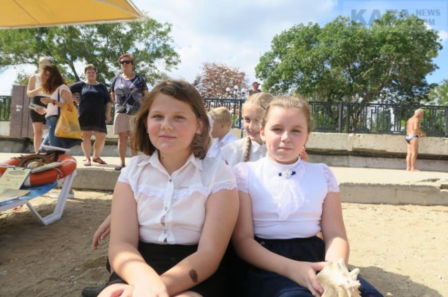 Ребята во главе со своим школьным библиотекарем Мариной Голубинской и сотрудником городской библиотеки Галиной Горшковой читали стихи Владимира Орлова. На фоне городского пляжа и многочисленных отдыхающих из уст школьников, нарядно одетых в парадную форму, прозвучали строки Владимира Натановича о море. Да и сами названия стихотворений наглядно говорят, о чем тут шла речь: «Я рисую море», «Капитан», «Ракушка», «Кто утюжит море», «Гости», «Для чего морю наряды», «Почему загрустил пароход», «Море работает». А загорающие на пляже и купающиеся в море, ставшие здесь зрителями живого представления, с интересом и удивлением приняли выступления юных артистов.
