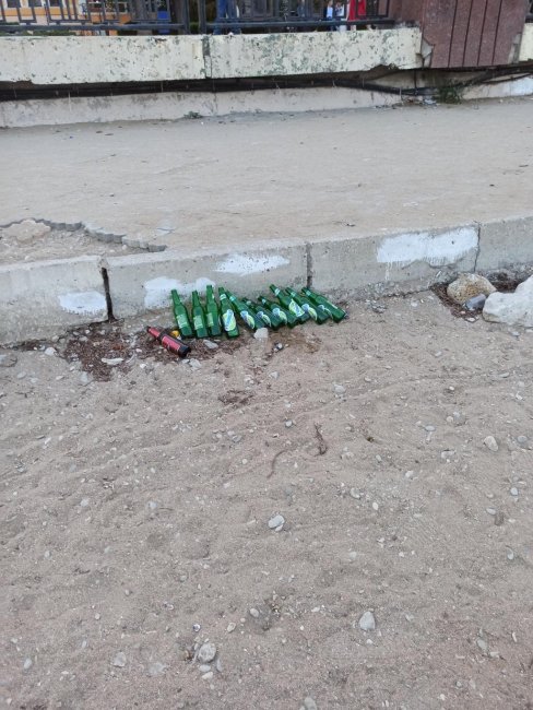 Первый городской пляж Феодосии пребывает в крайне плачевном состоянии. Гости и жители города дышат морским свежим воздухом среди залежей бутылок, бумажек и другого мусора, а совсем рядом с морем вообще гниют мертвые птицы. Дети собирают ракушки среди окурков и гуляют босыми ногами по остаткам еды. Сезон окончен, вывеска с данными об арендаторе снята, значит, и убрать не надо.