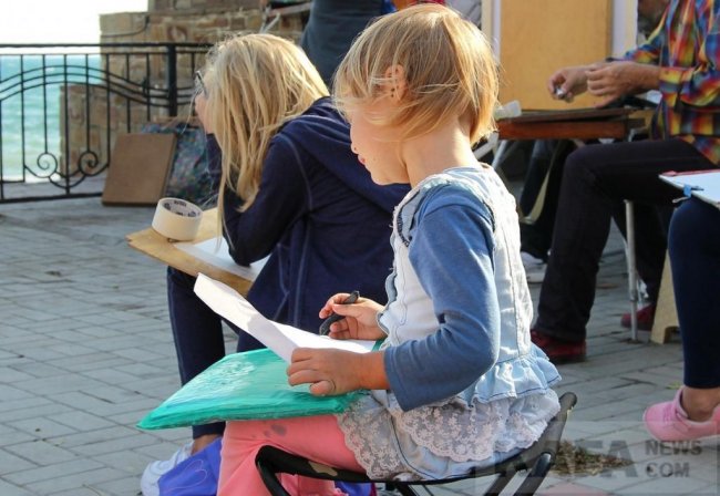 Суббота 17 октября выдалась теплой, но ветренной. Ветер был настолько сильным, что натюрморт из вазы с розами и фруктов пришлось скотчем приклеивать к парапету, но это не испортило никому настроение. И взрослые, и маленькие художники с увлечением принялись за живопись. На белых листах и холстах постепенно возникли розы на фоне моря всех видов и стилей, в индивидуальном преломлении каждого из художников. Ребята с интересом наблюдали за работой мастеров. Случайные прохожие останавливались, чтобы посмотреть на красочный процесс. В завершении пленэра детей и взрослых угощали чаем и сладостями.