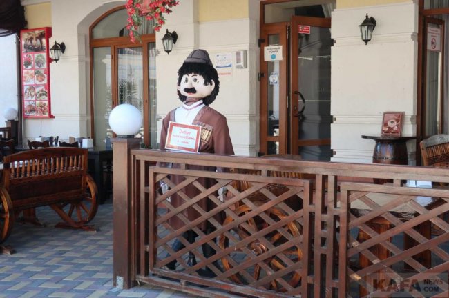 Гораздо симпатичнее выглядят в Феодосии мультики настоящие. Рисованные или кукольные персонажи, которые разбросаны по городу со вполне конкретными целями. Они служат зазывалами в кафе, ресторанах, магазинах и маленьких лавочках. Они предлагают нам эксклюзивное натуральное мороженое или не менее натуральный шашлык. Да мало ли еще чего предлагают нам купить, съесть и выпить настоящие мультики нашего негрустного городка.