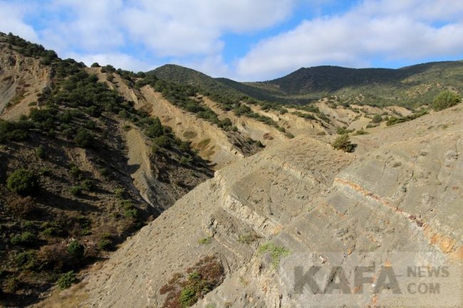 Но вопрос «зачем?» исчезает, как только поднимаешься на одну из открытых возвышенностей Перчема. Традиционно подъем начинается от виноградников на западной окраине Судака. Тропа идет по классическим бедлендам. Здесь, на Перчеме они особенно живописны. В конце октября причудливые складки оврагов покрыты алой скумпией и шиповником, а узкие хребты и поляны со скальными выступами душистыми деревьями и кутсами можжевельника. Здесь растет, как древовидный высокий можжевельник, так и его кустарниковая форма – полушаровидный можжевельник с колючей хвоей. Возраст отдельных деревьев достигает несчколько сотен лет. Можжевельник – основное растение на склонах Перчема, чуть выше начинается лес, состоящий из пушистого и скального дуба, грабинника, сосны крымской, шиповника, терна, орешника и дикой груши. На половине подъема расположен родник. Местные жители дали ему название «Родник верности». Удивительно, но в это засушливое лето из него потихоньку сочится вода. Немного не доходя до родника тропа раздваивается: влево идет путь к руинам средневекового Византийского монастыря, стены которого хорошо сохранились. Историки считают, что горные монастыри в Крыму и, в частности, в окрестностях Судака были основаны беглыми греческими монахами, которые покинули Византию, спасаясь от преследований иконоборцев. На Перчеме известно два таких монастыря.