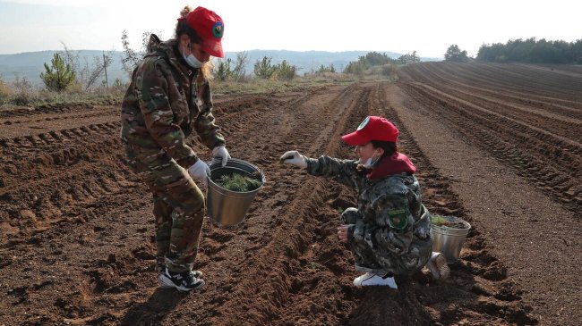 Фото: Управление информации и пресс-службы главы Республики Крым. Глава Республики Крым Сергей Аксёнов вместе с заместителем Министра природных ресурсов и экологии Российской Федерации – руководителем Федерального агентства лесного хозяйства Сергеем Аноприенко принял участие во всероссийской акции «Сохраним лес». Заместитель министра природных ресурсов и экологии РФ Сергей Аноприенко отметил, в этом году в рамках всероссийской акции планируется высадить порядка 40 миллионов различных деревьев, на сегодняшний день уже преодолели отметку 30 миллионов. В свою очередь, Сергей Аксёнов подчеркнул, что возрождение лесов – это одна из приоритетных задач как на республиканском, так и на федеральном уровне. «В Республике Крым компенсационная высадка деревьев осуществляется практически каждый год. В этом году в целом по республике будет высажено более 250 гектаров лесонасаждений. Деньги на это выделены Правительством Российской Федерации в рамках федерального проекта «Сохранение лесов»», - заявил Глава республики. В рамках акции была осуществлена непосредственно высадка саженцев: на двух гектарах на территории Бахчисарайского лесничества было высажено более 10 тысяч саженцев крымской сосны.