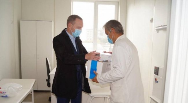 Парламентарий привез коробку антисептиков, упаковки медицинских масок и перчаток. Он поблагодарил коллектив амбулатории за работу в сложных условиях пандемии.