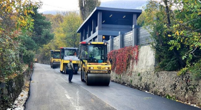 Фото Григория Назарова на странице в социальной сети. АО «ВАД» заканчивает укладку верхнего слоя покрытия на дороге Ялта - Бахчисарай, работы идут в районе села Соколиное Бахчисарайского района. Об этом сообщил Григорий Назаров, пресс-секретарь компании. «Дорожники отфрезеровали около 200000 м2 старого покрытия, устранив дефекты с помощью выравнивающего слоя. После этого началась укладка верхнего слоя покрытия. Помимо укладки асфальтобетона специалистам АО «ВАД» осталось закончить укрепление обочин и нанести разметку», - сообщил пресс-секретарь. По словам Григория Назарова, ремонт этой дороги будет завершён в середине ноября.