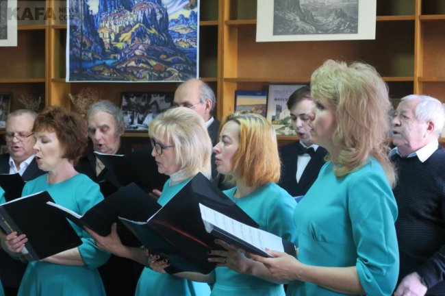 И никак такое событие не могло обойтись без музыки и пения. Сначала лихо отзвучал ансамбль юных балалаечников. Далее концерт продолжили певцы народного камерного хора «Кантабиле». Академический хоровой коллектив хорошо знаком и любим феодосийцами и гостями нашего города, его выступления всегда собирают полные залы преданной публики. Хор - многократный победитель и лауреат различных конкурсов самого высокого уровня. Уже более тридцати лет «Кантабиле» бессменно руководит заслуженный работник культуры и заслуженный артист Крыма Ефим Заславский. Ефим Борисович также является идейным вдохновителем и организатором ежегодного международного фестиваля-конкурса академического вокального мастерства имени Надежды Обуховой.
