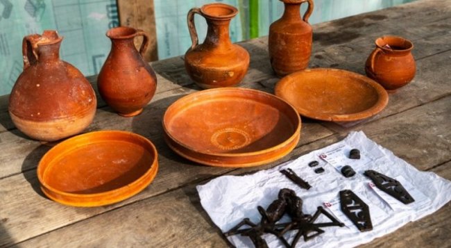 Количество находок, говорят исследователи, превзошло все ожидания: вещи из металла, керамики, стекла, кости, посуда, украшения, ременная гарнитура, оружие, орудия труда, предметы культа и туалета. Коллекция стеклянных сосудов насчитывает около 230 экземпляров разной сохранности. Самую большую группу составляют бальзамарии - стеклянные ёмкости, которые наполняли эфирными маслами и использовали при погребении. Обнаружены также стаканы, сферические тонкостенные кубки, кувшины, колбы, чаши, баночки с приземистым округлым туловом и отогнутым наружу венчиком.