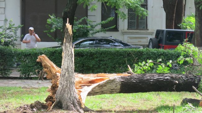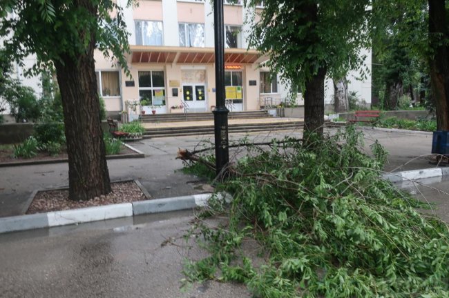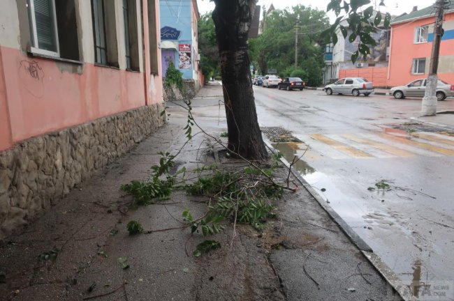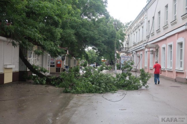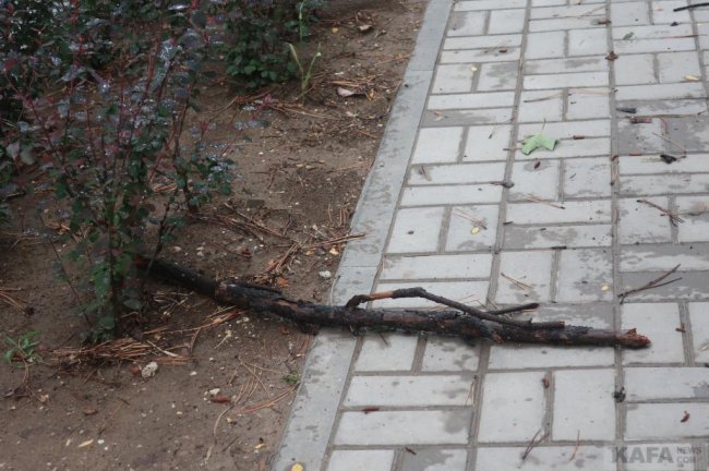Здоровенный сук обломился от дерева прямо напротив детской музыкальной школы №1 на проспекте Айвазовского. Остается только радоваться, что в это время никто из деток на занятия музыкой не шел. На том же проспекте, на уже около одного из ресторанов еще одно дерево потеряло большую ветку. Одна из крупных веток перегородила тротуар на улице Победы.