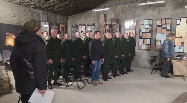 Внимательно слушали молодые военнослужащие рассказ о последних днях обороны в октябре 1942 года. Когда в Центральных каменоломнях оставалось не больше 20 человек. Защитники сражались до конца.