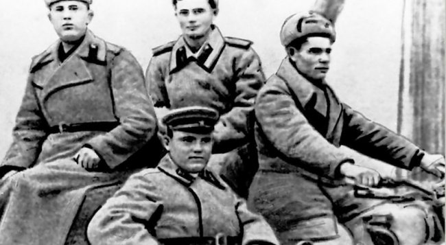За несколько дней до подвига разведчиков сфотографировал наш фронтовой корреспондент Леонид Яблонский - за рулём Михаил Задорожный, за ним - Пётр Велигин, слева Ефим (Григорий) Захарченко, в коляске - Николай Поддубный. Фото из архива газеты. У них был приказ: провести разведку - поступили данные о скоплении фашистов в стороне от дороги Евпатория - Симферополь. У них был выбор: выполнить приказ или, свернув, прийти на помощь. Они понимали, что от выбора, наверное, зависит срок их жизни на войне: при просто приказе может чуть ещё посражаются, может, даже до победы повезёт дойти, а свернуть, значит, почти наверняка погибнуть совсем скоро, ведь их всего девять, а врагов гораздо больше. Но было то, что перевесило все сомнения: их звали мальчишки, звали на помощь жителям села, старикам, инвалидам, детям, которых фашисты собирались уничтожить в здании школы, звали на помощь женщинам, которых от школы враги отгоняли автоматными очередями. И они сделали выбор. Девять мужчин, старшему - 34, младшему - 18, свернули с дороги в сторону села Ашаг-Джамин. Аварец (дагестанец) Магомед-Загид Абдулманапов, русские Василий Ершов, Пётр Иванов, Александр Симоненко, украинцы Пётр Велигин, Михаил Задорожный, Ефим (Григорий) Захарченко, Николай Поддубный и Иван Тимошенко. Приняли неравный бой 12 апреля 1944-го. Теперь это село носит название Геройское. В честь их, Героев Советского Союза, восьмерых - посмертно, одного - чудом спасённого. Совсем скоро исполнится 79 лет со дня победоносного завершения Крымской наступательной операции, освобождения полуострова от врага, и в этом освобождении есть и их вклад сапёров-разведчиков 19-го танкового корпуса. Помните имена Поднимаемся длинной лестницей на высокий холм в Сакском районе, курган Славы, - пять пилонов-стел, вершины пятиконечной звезды, и плита чёрного мрамора в середине - восемь имён, разные годы рождения и один, общий, - гибели. Сначала местные жители похоронили погибших героев на местном кладбище, а в шестидесятых прошлого века перезахоронили на кургане, рядом с которым и шёл бой, поставив куб-обелиск. В 1982-м у подножья появился танк Т-34, схожий с тем, на котором вступили в бой разведчики. В трудные девяностые энтузиасты из села (вначале его переименовали в Горьковское, но жители добились - Геройское) создали нынешний мемориал по проекту Владимира Петренко, а в музее - портреты фронтовиков работы Леонида Лабенка и диорама боя, созданная Иваном Петровым. Из поколения в поколение, передаётся в Геройском память и гордость за освободителей. В Центральном архиве Министерства обороны России сохранились именные списки безвозвратных потерь 3-го Гвардейского отдельного моторизированного инженерного и 91-го отдельного мотострелкового батальонов 19-го танкового корпуса. Смотрим их на портале ОБД «Мемориал», фамилии восьмерых погибших в Ашаг-Джамине. Командир отделения, гвардии сержант Николай Иванович Поддубный, родившийся в 1922-м, его ждала с войны мама Фёкла Свиридовна. Пулемётчик, заместитель командира отделения гвардии младший сержант Магомед-Загид Абдулманапов, родившийся в 1925-м, адрес брата Свигита. Сапёр, гвардии ефрейтор Михаил Алексеевич Задорожный, родившийся в 1923-м, его ждал папа Алексей Антонович. Сапёр, гвардии ефрейтор Ефим Трофимович Захарченко, родившийся в 1922-м, ждала мама Ирина Михайловна. Впрочем, по иным данны