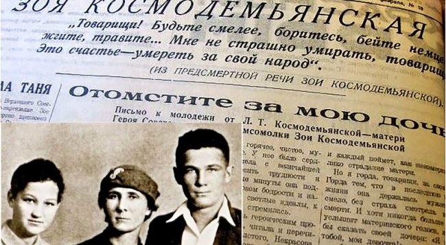 Её долго и жестоко пытали, но девушка держалась стойко, ничего не смогли узнать фашисты, даже имя. На показательную казнь согнали жителей деревни, фотографии жертвы делали… А она заговорила лишь в тот миг: «Граждане! Вы не стойте, не смотрите, а надо помогать воевать! Эта моя смерть - это моё достижение! Товарищи, победа будет за нами. Немецкие солдаты, пока не поздно, сдавайтесь в плен! Советский Союз непобедим и не будет побеждён! Товарищи! Будьте смелее, боритесь, бейте немцев, жгите, травите! Мне не страшно умирать, товарищи. Это - счастье умереть за свой народ…». Тело не снимали с виселицы больше месяца, продолжая издевательства над погибшей, потом всё же приказали местным похоронить… В январе 1942-го, когда после Московского контрнаступления освобождены те места, военкор «Правды» Пётр Александрович Лидов (погиб на фронте 22 июня 1944-го) услышал рассказ местных жителей о казни партизанки - «её вешали, а она речь говорила, всё грозила им»… И появилась статья «Таня», потом имя выяснили точно, - Зоя, и звание Героя Советского Союза посмертно - «за отвагу и геройство, проявленные в партизанской борьбе в тылу против немецких захватчиков», первой из женщин в ту войну. «Ни на допросе, ни в разговоре с петрищевской крестьянкой Прасковьей Кулик девушка не назвала имени, и лишь при встрече в лесу с одним из верейских партизан сказала, что её зовут Таней. Но и здесь из-за предосторожности скрыла настоящее имя. Сейчас Московским комитетом комсомола установлено, кто была эта девушка. <>Лучезарный образ Зои Космодемьянской светит далеко вокруг. Своим подвигом она показала себя достойной тех, о ком читала, у кого училась жить». Отрывок из статьи «Кто была «Таня», а также письмо Любови Космодемьянской с призывом «отомстить за дочь», опубликовал в конце февраля 1942-го и наш «Красный Крым» Евгения Петровича Степанова и Абрама Давидовича Райчука, выходивший тогда в Севастополе. А военкор Михаил Евсеевич Муцит писал, что защитники города на снарядах, рядом со словами «За Севастополь! За Крым», писали, как и многие фронтовики, - «За Зою!». Эта надпись появилась через два года и на танке «КВ» (Клим Ефремович Ворошилов), командиром боевой машины стал 18-летний Шура, Александр Анатольевич Космодемьянский.