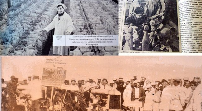 Сейчас о всеобщем снижении цен редко вспоминается, а вот рост их идёт: чего стоит только история со стоимостью курятины, даже в Симферопольском районе, когда-то славившемся своими, давно, увы, ставшими историей орденоносцами-птицефабриками - в совхозе «Красный», «Южная»… На выставке в Госархиве - ностальгические фотоснимки. Довоенная «бройлерная в совхозе «Красный» (фашисты в годы оккупации устроят в совхозе, в этих помещениях, концлагерь с тысячами наших погибших). Снимок за август 1972-го - на рабочем месте Валентина Викентьевна Козина, птичница птицефабрики «Южная», Герой Социалистического Труда. В Великую Отечественную она, 14-летняя уроженка села Шумхай (Заречное) Симферопольского района, стала партизанкой-разведчицей. В мирном труде после войны к боевым медалям, «За отвагу» и «Партизану Отечественной войны», добавились Звезда «Серп и Молот» Героя Социалистического Труда (одна ухаживала за 100 тысячами кур-несушек - рекорд так и не побит!), ордена Ленина, Октябрьской революции, Трудового Красного Знамени, Дружбы народов, медали Всесоюзной выставки достижений народного хозяйства и знак лауреата Государственной премии СССР (все деньги отдала детскому садику птицефабрики).