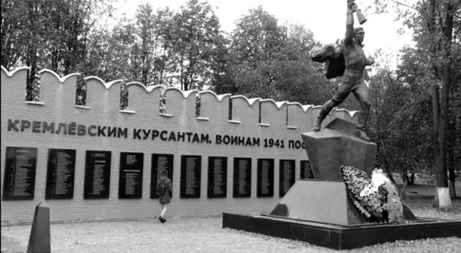 «Отступать некуда - позади Москва!». То, чем «дышала» страна, сказал ротный политрук Василий Георгиевич Клочков. 4-й роты Павла Михайловича Гундиловича, 1075-го стрелкового полка Ильи Васильевича Капрова, 316-й стрелковой дивизии Ивана Васильевича Панфилова (после его гибели 8-я Краснознамённая гвардейская имени Ивана Панфилова, комдив Василий Андреевич Ревякин), комиссары Сергей Александрович Егоров, Андрей Петрович Погорелов 16-й армии Константина Константиновича Рокоссовского, замкомандующего Фёдор Дмитриевич Захаров. У разъезда Дубосеково под Волоколамском 16 ноября 1941-го рота несколько часов сдерживала вражеские танки. И бойцы 354-й стрелковой Дмитрия Фёдоровича Алексеева, комиссара Василия Ивановича Белобородова и 78-й стрелковой Афанасия Павлантьевича Белобородова, комиссара Михаила Васильевича Боронникова, дивизий сдерживали. Страна держалась в Подмосковье, в 8 областях округи. Под Зеленоградом, деревнями Крюково, Матушкино, Савелки, Большие Ржавки, оттуда Неизвестный солдат, в 1966-м, когда останки его переносили в Александровский сад Кремля, гроб рядового нёс маршал Константин Рокоссовский - не мог иначе, боец его армии, не сдавшей Москву. Не сдали её и ребята, мечтавшие стать офицерами - курсанты и их командиры. У ребят не было ещё кубиков в петлицах, не знали о звёздах на погонах, им солнце светило, а земля, снега вокруг становились алыми от крови.