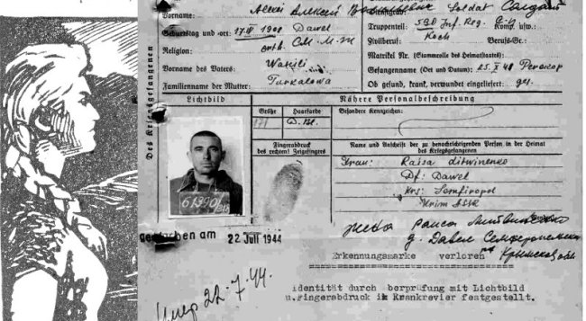 И несколько весточек-треугольничков: «Жив, здоров, береги, Раечка, детей». С сентября писем не было. Годы спустя взрослые дети получили из архива ответ-извещение, «Пропал без вести». Теперь, когда появился портал «Память народа», известно: погиб в фашистском плену. Основания для того извещения находим, узнавая, что родился парень 17 апреля 1908-го, призван 15 июля 1941-го, красноармеец, повар, «можно считать пропавшим без вести» и имя мамы Марии Антоновны. С ней и двоюродной сестрой Лидой девочки, Лена и Надя Литвиненко, встретятся, когда переведут в тот детдом Тавеля, уже Краснолесье. Ещё документ - фашистская учётная карточка военнопленного: «Солдат (рядовой) Алексей Васильевич Литвиненко пленён 25 октября 1941 на Перекопе». Тяжелейшие бои там шли, чтобы сдержать натиск врага на полуостров, не удалось - десятки тысяч погибших, тысячи раненых, контуженных, в бессознательном состоянии в плен попадавших, как и Алексей. Сначала в «Картофельном городке», в Симферополе, был, потом Ламсдорф, Верхняя Силезия, в Германии (ныне - Польша), концлагерь Stalag (Шталаг) VIII F (318). Пустырь, обнесённый колючкой, руками, ложками военнопленные, в основном с юго-запада СССР, рыли укрытия от непогоды (бараки позволили строить лишь в конце 1942-го). Голод, холод, работы на каменоломне, эпидемии, пытки, фашисты расстреливали, натравливали собак…