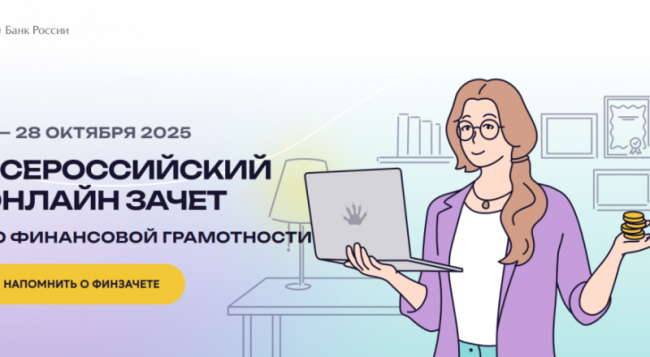 Картинка с сайта zppdon.ru Сделать это могут россияне онлайн до 28 октября включительно. Тестирование позволит участникам оценить, умеют ли они грамотно распоряжаться деньгами, хорошо ли разбираются в финансовых услугах, готовы ли открыть своё дело, способны ли защититься от мошенников. Участвовать в VIII всероссийском онлайн-зачёте по финансовой грамотности от Банка России можно индивидуально или всей семьёй. Задания для зачёта подготовлены на основе конкретных жизненных ситуаций. Их количество и сложность зависят от возраста участника. Например, для детей младшего школьного возраста предусмотрены интерактивные задания в игровой форме. Те, кто уверены в своих силах, могут выбрать на сайте проекта (finzachet.ru) продвинутый уровень сложности. Длительность зачёта: до 20 минут - при прохождении лично, до 40 минут - олимпиадные испытания, не более 1 часа - для семейных команд. Можно изучить теорию и пройти тест повторно, количество попыток не ограничено. По итогам зачёта каждый получит индивидуальные советы и подборки материалов по темам, с которыми возникли сложности. Успешно справившиеся с испытанием участники получат именные сертификаты. Оксана ВИХЛЯЕВА.
