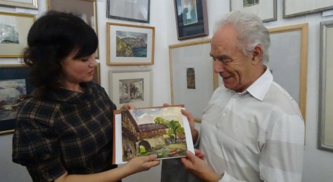 Светлана Глазунова принимает в подарок акварель Якова Басова от сына мастера Александра. Потому что выставка камерной акварели Крыма имени Рудольфа Подуфалого - событие значительное и значимое для мастеров изобразительного искусства и почитателей их таланта, и на ней надо себя представить достойно. Открытие тринадцатой по счёту Биеннале, которая будет экспонироваться в Симферопольском художественном музее, запланировано на 12 ноября, а продлится она по традиции два месяца - до 10 января 2021 года. - Ждём от графиков оригинальные работы всех жанров, стилей и направлений, - приглашает заместитель директора музея Светлана Глазунова. - Постоянные участники знают все условия, а новичкам напомню, что должны быть работы, созданные в прошлом и нынешнем году. От каждого автора принимается не более трёх картин, выполненных в технике чистой акварели, размер изображения - не более 31,0 х 21,5 см. Каждая работа должна быть правильно оформлена: в паспарту, под стеклом, в раме или окантовке (для пересылки по почте - под оргстекло), с креплениями на оборотной стороне. На обороте должны быть также указаны фамилия, имя и отчество автора, год рождения, адрес и телефон, название, дата создания работы и её размер. До осени (работы будут приниматься с 20 октября по 7 ноября) достаточно времени, чтобы создать или отобрать самое на взгляд автора оригинальное, отвечающее высоким требованиям акварельного искусства. Работы будет оценивать компетентное жюри. За лучшую работу присуждается Гран-при, за оригинальные - дипломы. А по голосованию посетителей - Приз зрительских симпатий. По традиции по входным билетам, разыгранным в лотерее, будут определены счастливые обладатели акварелей участников выставки. Людмила МИЛИНА. Фото автора.