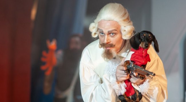 Андрей Пермяков в роли Мюнхгаузена. Фото Надежды Бондарчук. Полюбившиеся зрителям спектакли Крымского ТЮЗа можно будет увидеть в конце этого месяца. - Постановка «Сказ про Федота-стрельца» особенно нравится подросткам, - отмечает руководитель литературно-драматургической части театра Наталья Ивацик. Смелая интерпретация текста Леонида Филатова дополнена интересным режиссёрским замыслом, образной сценографией и футуристическими русскими костюмами. Зрители совершат увлекательное путешествие во времени вместе с героями. Спектакль можно будет увидеть 29 января. 30 января - пронзительная история молодых девушек, попавших в жернова Великой Отечественной войны, отдавших жизни за Родину «А зори здесь тихие.» по широко известной одноимённой повести Бориса Васильева. Младших школьников и их родителей позабавят 31 января герои спектакля «Братец Лис и Братец Кролик ШОУ» забавными розыгрышами, танцами и съёмками настоящего ТВ-шоу. Зрители постарше тоже приглашаются 31 января в театр, на спектакль «Мюнхгаузен», в основе сюжета которого все самые известные приключения Барона, знаменитого путешественника и фантазёра. На глазах достопочтенной публики он совершит «Полёт на ядре», «Путешествие по России» и многие другие необыкновенные трюки. Роль очаровательного четвероногого друга Барона исполняет такса Нирма. - Посещение театра возможно только при соблюдении мер по предупреждению распространения коронавирусной инфекции: быть в медицинских масках и соблюдать дистанцию не менее 1,5 метра, - напоминает Наталья Ивацик.