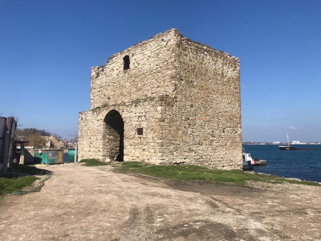 По соседству есть и рыбный магазин, в котором, по идее, должна продаваться свежая рыба. Магазин не работает, а стена его - остаток древнего средневекового монастыря. При советской власти эту часть здания запрещали штукатурить. Но позже забыли об исторической важности. Так что ничего сверхъестественного в разрушении башни нет. Люди давно издеваются над этими сооружениями, а природа постепенно уносит часть истории в море. Закрыть башню от отдыхающих можно - так раньше и было - но где гарантия, что они не начнут писать во все инстанции и требовать вернуть им небольшой пляж у башни?