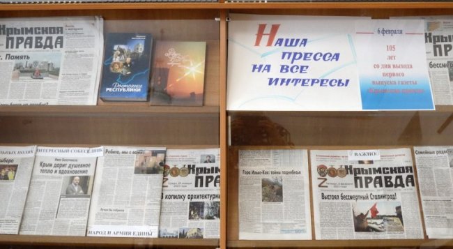 Игнатий 24-фев, 00:01 193 Новости АРК / Культура - Крыма.Так называется выставка в читальном зале Симферопольской центральной городской библиотеки имени А. С. Пушкина, посвящённая 105-летию республиканской общественно-политической независимой газеты «Крымская правда».