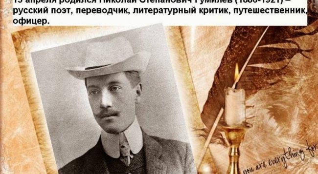 Вспоминаем Н. Гумилёва. Коллаж из открытого источника. XVIII Международный Гумилёвский поэтический фестиваль проводится с 18 по 22 апреля в Коктебеле, Симферополе и Феодосии. При поддержке Министерства культуры республики, Феодосийской и Коктебельской администраций и общественной организации «Общест- во возрождения Коктебеля» фестивальные встречи организуют универсальная научная библиотека им. И. Я. Франко, Союз писателей России и его Крымское региональное отделение. Начнётся фестиваль 18 апреля традиционным митингом с возложением цветов к памятнику ярчайшему представителю Серебряного века, выдающемуся русскому поэту и награждением лауреатов Всероссийской литературной премии имени Николая Гумилёва. Литературный праздник продолжится в Центральной феодосийской городской библиотеке имени Александра Грина поэтической программой «Николай Гумилёв - формула судьбы». Памятный день закончится увлекательной пешеходной экскурсией по городу с посещением Феодосийского музея древностей. В торжественном открытии фестиваля 19 апреля, в 12.00, в Мраморном зале библиотеки им. И. Я. Франко примут участие представители органов власти и Государственного Совета, Общественной палаты республики, писатели, деятели культуры и искусств, а также почитатели таланта Николая Гумилёва. В поэтическом марафоне «Ещё не раз вы вспомните меня» представят своё творчество лауреаты всероссийской литературной премии имени Н. С. Гумилёва нынешнего года и предыдущих лет, победители второго виртуального конкурса чтецов «Серебряный звон русской поэзии», писатели и барды. Почётный президент Крымской академии наук, член Союза писателей России Виктор Тарасенко представит свою новую книгу «Крымский калейдоскоп». 20 апреля, в 14.00, ценители поэзии Анны Ахматовой приглашаются на лекцию кандидата искусствоведения, доцента, заслуженной артистки Крыма Лилии Шиловой «Это кто-то другой страдает, Я бы так не могла.». В фестивальной программе привлечёт внимание литературный час «Поэт. Путешественник. Воин», который 21 апреля проведут в посёлке Орджоникидзе специалисты местной библиотеки. Завершатся традиционные апрельские встречи музыкально-поэтической программой «Прогулка по Серебряному веку» 22 апреля, в 14.00, в конференц-зале библиотеки имени И. Я. Франко. Её подготовила заслуженный работник культуры РК автор песен и исполнитель Ирина Ермолова. Встречи в Центральной библиотеке республики и в библиотеках Феодосии проходят на фоне литературных экспозиций: «Силуэты Серебряного века», «Лежит на ладони Серебряный век», «Ещё не раз вы вспомните меня и весь мой мир волнующий и странный…», «Рыцарь мечты», «Николай Гумилёв. Рыцарь с душою скитальца». На сайте и социальных сетях библиотеки им. И. Я. Франко будут представлены виртуальный литературный экскурс «Мне всё открыто в этом мире» и слайд-лекция «Истоки таланта. Музеи-усадьбы русских писателей». Посетить все мероприятия может свободно каждый.