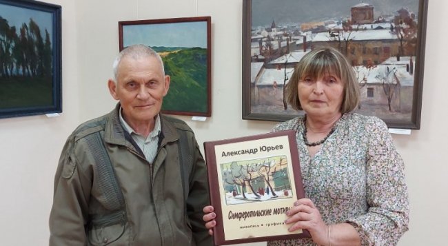 Александр передаёт альбом директору музея Ирине Вдовиченко. Фото автора. Так пишет картины лауреат премии Крыма Александр Юрьев, выставка которого открылась в музее истории Симферополя. В экспозиции из 22 картин представлены два цикла, посвящённые любимому городу художника и месту силы и вдохновения - Мангупу. - Все картины написаны с натуры, - поясняет автор. - По-другому не работаю. Бывает, что пишу по памяти в мастерской, но редко. Потому что для меня главное - выплеснуть на холст то, что дала мне природа. Её сиюминутное состояние. В мастерской можно добиться технического совершенства, уходит чувственность, экспрессия, звучание музыки. Музыкальность для меня признак того, что картина живая. Живая - когда она дышит. Тогда есть отклик и у зрителей, они проникаются чувствами художника, считывают состояние природы. Для меня смысл творчества - не что иное как потребность воплотиться в будущем через прошлое и настоящее. Госпремию Александр получил за серию картин, передающих атмосферу Симферополя, его неповторимые, наполненные лиризмом, старинные улочки. Альбом репродукций этих работ Александр подарил музею, в котором, как он отметил, работают хорошие люди. Эти картины - уже свидетельство времени. И чем дальше, тем ценнее они будут с этой точки зрения.