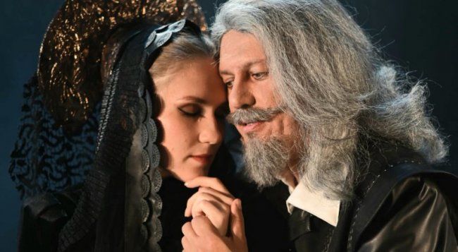 Алёна Лукашевич и Олег Погорелец в сцене из спектакля. Фото Константина Пикулина. Спектакль художественного руководителя театра Андрея Пермякова «Маленькие трагедии» по циклу драматических пьес «Пир во время чумы», «Скупой рыцарь», «Моцарт и Сальери», «Каменный гость» собрал аншлаги: билеты на все премьерные показы были сразу же раскуплены. Режиссёр взялся за постановку именно этих произведений, считая, что их тема не теряет актуальности. А ему интересно исследование сущности человеческого естества. - Наш спектакль о людских пороках и их разрушительной силе оставляет надежду на то, что в душе каждого может появиться свет, - отмечает режиссёр-постановщик спектакля Андрей Пермяков. - Мы экспериментируем с пространством, временем и сознанием: собранные за одним столом персонажи «оживляют» «Тайную вечерю» Леонардо да Винчи, погружая зрителя в атмосферу «тёмного времени» свирепствования чумы. Среду обитания и трагичность каждого из сюжетов помогает создать лаконичное художественное оформление художника-постановщика Ольги Долговой. Пробиться сквозь сумрак к свету - это цель нашего диалога с Богом. Молитва и поиск истины, перерождение через боль и утраты, душевные метания и вера - символ надежды и абсолютной безусловной любви. Вместо реквизита, еды, воды, денег - один лишь пепел, вместо золота - стальные цепи и только оружие настоящее. Сталь клинков и пепел - партнёры артистов на сцене. Первый премьерный показ «Маленьких трагедий» в Евпатории состоялся 25 ноября. Воскресный спектакль прервала чрезвычайная ситуация: из-за сильных порывов ветра часть Евпатории была обесточена. Электричество в театре пропало, когда на сцене разыгрывали сцену «Моцарт и Сальери». Смерть Моцарта - и гаснет свет, заворожённые зрители не сразу поняли, что произошло. С нетерпением ждали они продолжения встречи с пушкинскими героями. И продолжение последовало через четыре дня, когда город и горожане пришли в себя после испытания непогодой. - О спектакле могу сказать одним словом: грандиозно! - поделился впечатлением симферополец Николай Строев. - Как давний, с детства, поклонник «Золотого ключика», стараюсь не пропускать ни одной постановки ТЮЗа. И ни разу ещё не был разочарован. Но то, что увидел в этот раз, превзошло все ожидания! Меня буквально сразила (в хорошем смысле) оригинальная режиссура, безупречная игра актёров, их слаженный ансамбль. Не побоюсь сказать: всё без сучка и задоринки, что называется. В душе осталась радость от соприкосновения с эстетикой настоящего искусства, соединяющего классику с современностью. И это не единственный восторженный отзыв. Зал долго приветствовал создателей спектакля дружными аплодисментами. Расходиться не хотелось, и в фойе многие бурно обсуждали увиденное, игру Алёны Лукашевич (донна Анна), Олега Погорельца (дон Гуан), Владимира Миллера (Барон Филипп), Юлии Авдониной (Судьба), Романа Рыжова (Моцарт) и Дмитрия Афиногенова (Сальери), Юрия Щадукина (Герцог) и юного Петра Пермякова (герцог в детстве).
