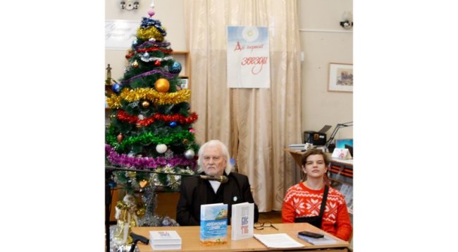 Валерий Митрохин с внуком Артёмом, оформляющим книги дедушки. Фото Елены ПЛОХОЦКОЙ. Так назвал в этом году традиционную январскую встречу с читателями в симферопольской библиотеке имени А. С. Пушкина известный крымский писатель Валерий Митрохин, признавшийся - «Дух мой восходит до первой звезды». Заслуженный работник культуры РК, лауреат Всероссийской премии имени Николая Гумилёва и Государственной премии республики рассказал о ведущей его по жизни вере, о божественном промысле и спасении души, о силе любви, помогающей преодолеть трудности земного пути. Жизненная позиция писателя отражена в прозаических и поэтических произведениях писателя, книги которого представлены на выставке «Под сиянием Рождественской звезды». С автором общались клирик симферопольского храма Всех Святых протоиерей Димитрий (Шишкин), постоянные читатели библиотеки, музыканты, подарившие минуты наслаждения прекрасным искусством. Многие участники литературного вечера увидели себя на фотографиях краеведа, публициста, фотомастера Александра Трунова, выставка которого «Жизнь - не фонтан» экспонируется в библиотеке. - Достижения в истории человечества стали возможными благодаря недюжинному уму и нелёгкому труду людей, наделённых талантом, - отметил Валерий Митрохин. - Талант - это дар Божий, который помогает нам ставить цели и добиваться их. Это ли не настоящее чудо?! В наше время творческие люди сталкиваются с очередным искусителем - искусственным интеллектом, который может служить как во благо, так и во вред человеку. Надеюсь, мы отразим натиск изощрённого бездушного робота-невидимки. Надеюсь, и на этот раз мы спасёмся. Если останемся с Богом.