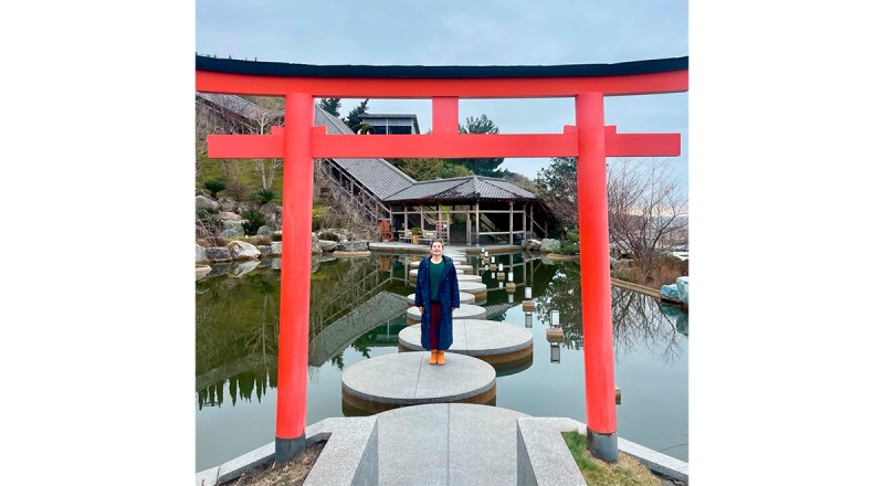 Есть, конечно, небольшой плюс - прогуливающаяся как бы японка с книгой. Она одета в национальный костюм, неспешно гуляет и читает. Фото рядом с ней, вполне возможно, будут довольно симпатичными.