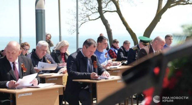 Эдуард 26-апр, 07:30 193 Новости АРК / Культура - Крыма.У подножия Обелиска Славы на горе Митридат в Керчи разместили 29 школьных парт. За них сели участники VIII Международного исторического "Диктанта Победы", который проводили на тему событий Великой Отечественной войны, пишет РИА Новости Крым.