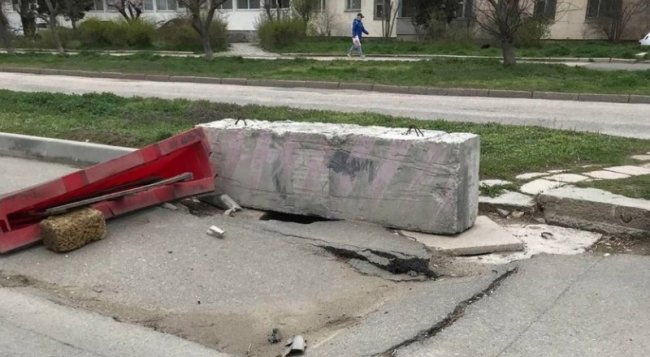 В Евпатории местные жители предлагают на месте дыры в асфальте поставить памятник городской администрации. На улице Дёмышева образовался провал, который будто не видят чиновники.