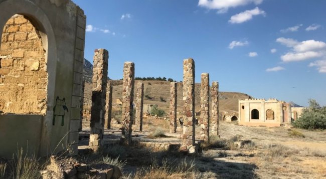 От самого киногородка осталось немного - несколько строений, которые пока ещё не разрушили ветер, солёные морские брызги и любители халявных строительных материалов. Внутри сооружений можно найти рисунки, которые оставили любители прекрасного.