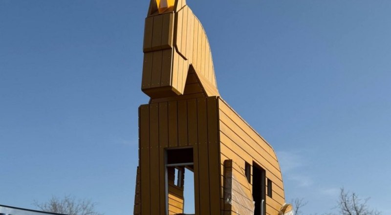 Фото с Telegram-канала Олега Каторгина. Детский игровой комплекс «Троянский конь», выполненный в виде коня из древнегреческих мифов, появился в Приморском парке Керчи. По задумке городской администрации он станет частью тематического комплекса, который напомнит детям и их родителям об истории самого древнего города России. Об этом «Российской газете» рассказал глава администрации Керчи Олег Каторгин. «Троянский конь» - это арт-объект, часть тематического комплекса, посвящённого древнегреческим мифам. Вместе с ним парк украсят «Стрела Париса» и композиция «Ахиллес и Черепаха», - раскрыл подробности проекта мэр города. «Троянский конь» - напоминание о военной хитрости, решившей исход многолетней войны. В исполнении на игровой площадке он будет полым внутри, как и настоящий конь из Трои, дети смогут забраться внутрь арт-объекта. Олег Каторгин напомнил, что именно на территории современной Керчи, в древнем городе Мирмекии, по преданию, родился легендарный герой Ахиллес. Все три арт-объекта связаны с именем этого античного героя. Стремительный Ахиллес в итоге не сумел догнать медленную Черепаху, а стрела Париса оборвала жизнь легендарного героя. Все объекты изготовлены из дерева, поскольку оно не только эстетично, но и лучше переносит влажный морской воздух Керчи. Сергей ВИННИК.
