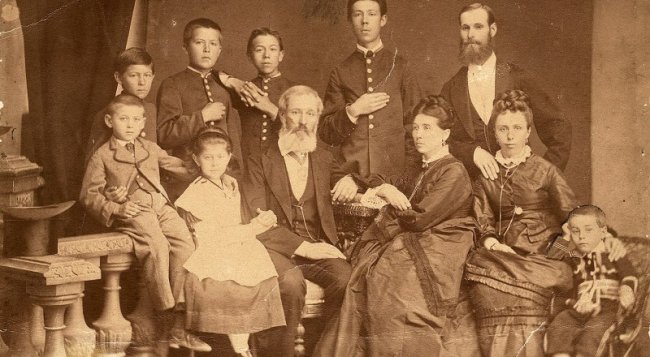 На самой известной фотографии семейства Чеховых Михаил сидит крайним слева (фото из фондов ТГЛИАМЗ, ТМЧ ОФ 5342).