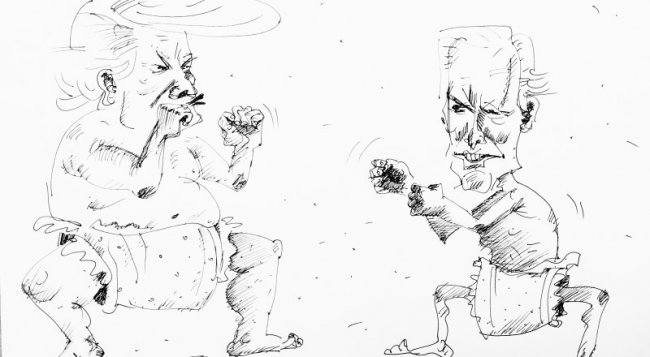 Рисунок Эдуарда Кулиша Чем ближе президентские выборы в США, тем больше мировая политическая повестка приобретает черты трагифарса. Не в классическом, к сожалению, исполнении, а в отвратительно пошлом и глумливом стиле Шарли Эбдо. Но ещё одна примета нынешнего смутного времени состоит в том, что плохие сражаются с плохими. И чем больше они ослабляют друг друга, тем больше в итоге шансов у этого мира быть унаследованным пусть не праведниками, но хотя бы более вменяемыми и ответственными политиками. Хроники дряхлеющего глобализма Ковидный «Слоник» и «Осёл» на батарейках Первые дебаты Дональда Трампа и Джо Байдена шокировали даже самых горячих поклонников обоих кандидатов, напомнив теперь уже старую украинскую остроту: «А скажіть, будь ласка, «дебати» - це іменник чи дієслово?» («Скажите, пожалуйста, «дебаты» - это существительное или глагол?»). После столь яркого шоу ответ очевиден. Несмотря на преклонный возраст, по части телевизионного действия Трамп с Байденом далеко переплюнули даже одиозную Юлию Тимошенко, благодаря политическому темпераменту которой и появилась упомянутая выше острота. И как видим, длительное общение с «незалежниками» не прошло бесследно для американского политикума. 77-летний Байден назвал 74-летнего Трампа «щенком Путина», обвинил в уходе от уплаты налогов (серьёзное обвинение в США), заявив, что Трамп, будучи миллиардером, платил в казну, как школьный учитель. Трамп в долгу не остался и рассказал ошалелой публике, что Байден был худшим учеником в своём классе и своей школе, а не имевшего ни постоянной работы, ни каких-либо профессиональных навыков сына-наркомана устроил в совет директоров печально знаменитой компании Burisma, где «давал ему десятки миллионов долларов». Байден признал, что у сына были проблемы с наркотиками, но заявил, что они остались в прошлом. Комментаторы и поклонники обратили внимание, что «Сонный Джо» выглядел совсем не сонным и подозрительно бойко вёл перепалку. При внимательном просмотре видео, наушников, по которым Байдену могли бы подсказывать ответы, как это предсказывали «знатоки» до начала дебатов, не обнаружилось. Однако был замечен загадочный «проводок», выглянувший несколько раз из-под пиджака 77-летнего кандидата в президенты США от Демократической партии, который во время телешоу несколько раз явно поправлял некое устройство, скрытое под костюмом. «Все истерички США обоего пола будут голосовать за очевидным образом выжившего из ума Байдена. Сейчас медики активно обсуждают, каким коктейлем из препаратов его накачали перед дебатами. К счастью, число истеричек в стране не слишком велико. А если окажется, что истеричек больше половины, тогда США можно будет даже не жалеть», - считает известный эрудит, публицист и телеведущий Анатолий Вассерман. По его мнению, пара Дональд Трамп / Майк Пенс имеет всё же больше шансов на победу, чем гибридная команда демократов Джо Байден / Камала Харрис: «Большинство граждан, что умеет и любит работать, а в этом отношении американцы очень хороши, скорее всего, проголосует не за личность Трампа, а за его программу». Но, пожалуй, прогноз Вассермана - из числа самых оптимистичных. Известие о том, что Трамп с супругой заболели Covid-19, лишь добавило драматизма в предвыборную кампанию. Но уже задолго до того, как соперники принялись «дебаты» друг дру