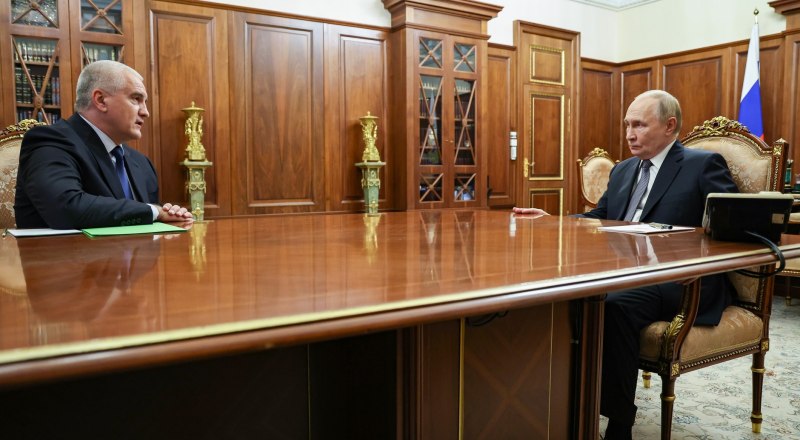 Сергей Аксёнов с докладом у президента России. Фото с сайта Кремля. Президент России Владимир Путин провёл в Кремле встречу с главой Республики Крым Сергеем Аксёновым. Сергей Аксёнов доложил главе государства о социально-экономической ситуации в Крыму. Отдельное внимание было уделено строительству социальных объектов и развитию дорожной инфраструктуры. «Экономика, несмотря на внешние факторы воздействия, всё равно рост демонстрирует, налоговые и неналоговые доходы в бюджет Республики Крым, рост по отношению к прошлому году, несмотря на все негативные факторы внешнего воздействия. Основные моменты: это драйвер ФЦП и национальные проекты. По национальным проектам: _