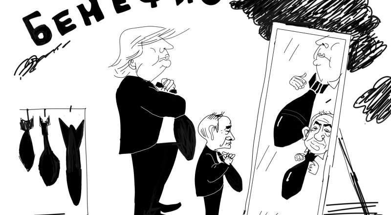 Рисунок Эдуарда Кулиша. Вопреки библейской рекомендации и, не дожидаясь очередного раунда переговоров, в которых, если верить посредникам, наметился прогресс, новую иранскую войну решили больше не откладывать. Убиты Верховный лидер Ирана, его дочь, зять, внук и одна из невесток. Убиты начальник Генштаба Вооружённых сил Ирана, главнокомандующий Корпусом стражей исламской революции (КСИР), советник Верховного главнокомандующего и секретарь Совета обороны, министр обороны и поддержки Вооружённых сил. В ответ Иран наносит удары по Израилю и американским базам в Бахрейне, Катаре, Кувейте, ОАЭ, Саудовской Аравии, Иордании, Ираке. Языком официальной дипломатии «Утром, 28 февраля, вооружённые силы США и Израиля приступили к нанесению военно-воздушных ударов по территории Ирана. Масштаб и характер предшествовавших этому безрассудному шагу военно-политических и пропагандистских приготовлений, включая стягивание в регион крупной военной группировки США, не оставляют сомнений в том, что речь идёт о заранее спланированном и неспровоцированном акте вооружённой агрессии против суверенного и независимого государства-члена ООН в нарушение основополагающих принципов и норм международного права. Осуждения заслуживает и тот факт, что атаки вновь осуществляются под прикрытием возобновившегося переговорного процесса, якобы призванного обеспечить долгосрочную нормализацию обстановки вокруг Исламской Республики, и вопреки доводившимся до российской стороны сигналам об отсутствии у израильтян заинтересованности в военной конфронтации с иранцами. Международное сообщество, включая руководство ООН и МАГАТЭ, обязано немедленно дать объективную и бескомпромиссную оценку безответственным действиям, направленным на разрушение мира, стабильности и безопасности на Ближнем Востоке. Вашингтон и Тель-Авив в очередной раз затеяли опасную авантюру, которая стремительно приближает регион к гуманитарной, экономической и, не исключено, радиологической катастрофе. Намерения агрессоров понятны и декларируются ими вполне открыто - разрушить конституционный строй и уничтожить руководство неугодного им государства, которое отказалось подчиняться силовому диктату и гегемонизму. Ответственность за негативные последствия рукотворного кризиса, включая непредсказуемую цепную реакцию и раскручивание спирали насилия, целиком и полностью лежит на них, - говорится в официальном заявлении МИД России. - Открыто игнорируются тяжёлые последствия этих необдуманных шагов для глобального режима нераспространения, краеугольным камнем которого является ДНЯО. При этом американо-израильский тандем прикрывается мнимой заботой о том, чтобы иранцы не обзавелись ядерным оружием. Бомбардировки ядерных объектов, находящихся под гарантиями МАГАТЭ, недопустимы. На деле у Вашингтона и Тель-Авива мотивы, не имеющие ничего общего с режимом нераспространения. Они не могут не понимать, что, ввергая Ближний Восток в пучину неконтролируемой эскалации, фактически побуждают страны по всему миру, прежде всего в регионе, обзаводиться всё более серьёзными средствами против возникающих угроз. Особую тревогу вызывает серийный характер осуществляемых администрацией США на протяжении последних месяцев дестабилизирующих ударов по международно-правовым опорам миропор