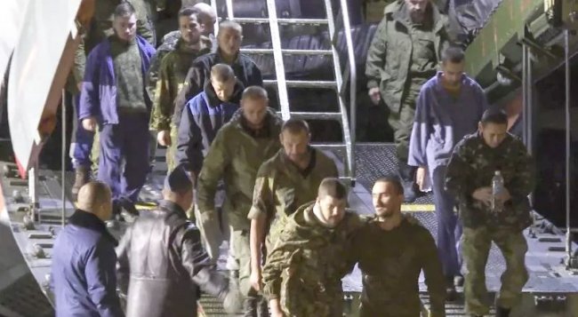 Фото пресс-службы Минобороны РФ/ТАСС. Министерство обороны России опубликовало видео, на котором показано прибытие на российский аэродром освобождённых из украинского плена военнопленных, сообщил корреспондент «Российской газеты». «Мы спали на поддонах в подвале какой-то воинской части, там было темно и сыро. Кормили так - два раза в сутки давали по две-три ложки каши… Оскорбляли постоянно, домой звонить не давали, было трудно…», - рассказал один из освобождённых. «В плену находился 98 суток, отношение было жёсткое. Условия были не очень, спали на поддонах или ковриках. В туалет выпускали один или два раза за сутки», - рассказал другой освобождённый. «В плену находились 21 день. Следы побоев у меня на лице, по рёбрам били. Спасибо всем, кто посодействовал нашему освобождению», - сказал ещё один бывший военнопленный. Ранее в военном ведомстве сообщили о совершённом накануне ночью обмене военнопленными с украинской стороной. По словам официального представителя военного ведомства генерал-лейтенанта Игоря Конашенкова, этому предшествовал «сложный переговорный процесс». Всего с подконтрольной киевскому режиму территории Украины удалось вызволить 55 человек. В настоящее время они находятся в медучреждениях Минобороны РФ. Иван ПЕТРОВ.