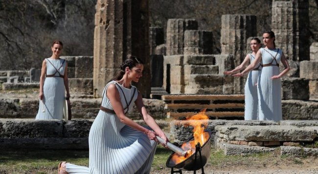 Перед каждыми зимними или летними Олимпийскими играми в греческой Олимпии в торжественной обстановке зажигается огонь, который доставляется в страну, проводящую Игры. Там специальная эстафета проносит олимпийский огонь по всей стране, а в день открытия Игр он вспыхивает на главной арене Олимпийских игр. Но ныне, впервые за последние 35 лет, огонь был зажжён в древней Олимпии, на полуострове Пелопоннес, без присутствия зрителей. Была отменена и короткая эстафета по греческой земле. Факел погрузили в самолёт, который доставил его в Японию, где с 26 марта начнётся эстафета, путь которой будет пролегать по всем 48 префектурам страны. «Втихаря», без зрителей.